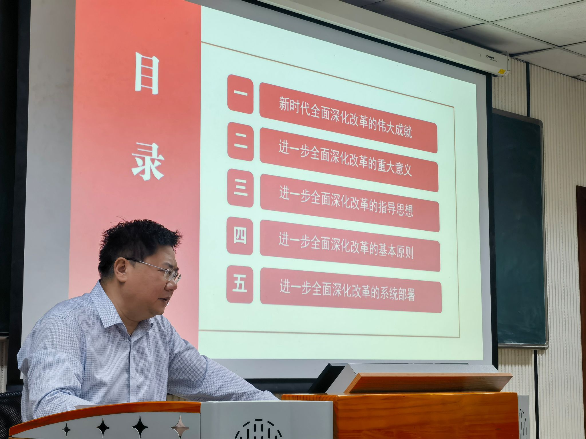 周余斌书记带领同学们梳理回顾新时代全面深化改革的伟大成就,点明了进一步全面深化改革的重大意义,要求同学们深入领会全会提出的指导思想,深刻理解全面深化改革的基本原则,了解明晰党中央的系统部署等五个方面,不断学习、领会、贯彻党的二十届三中全会精神的核心要义和深刻内涵。