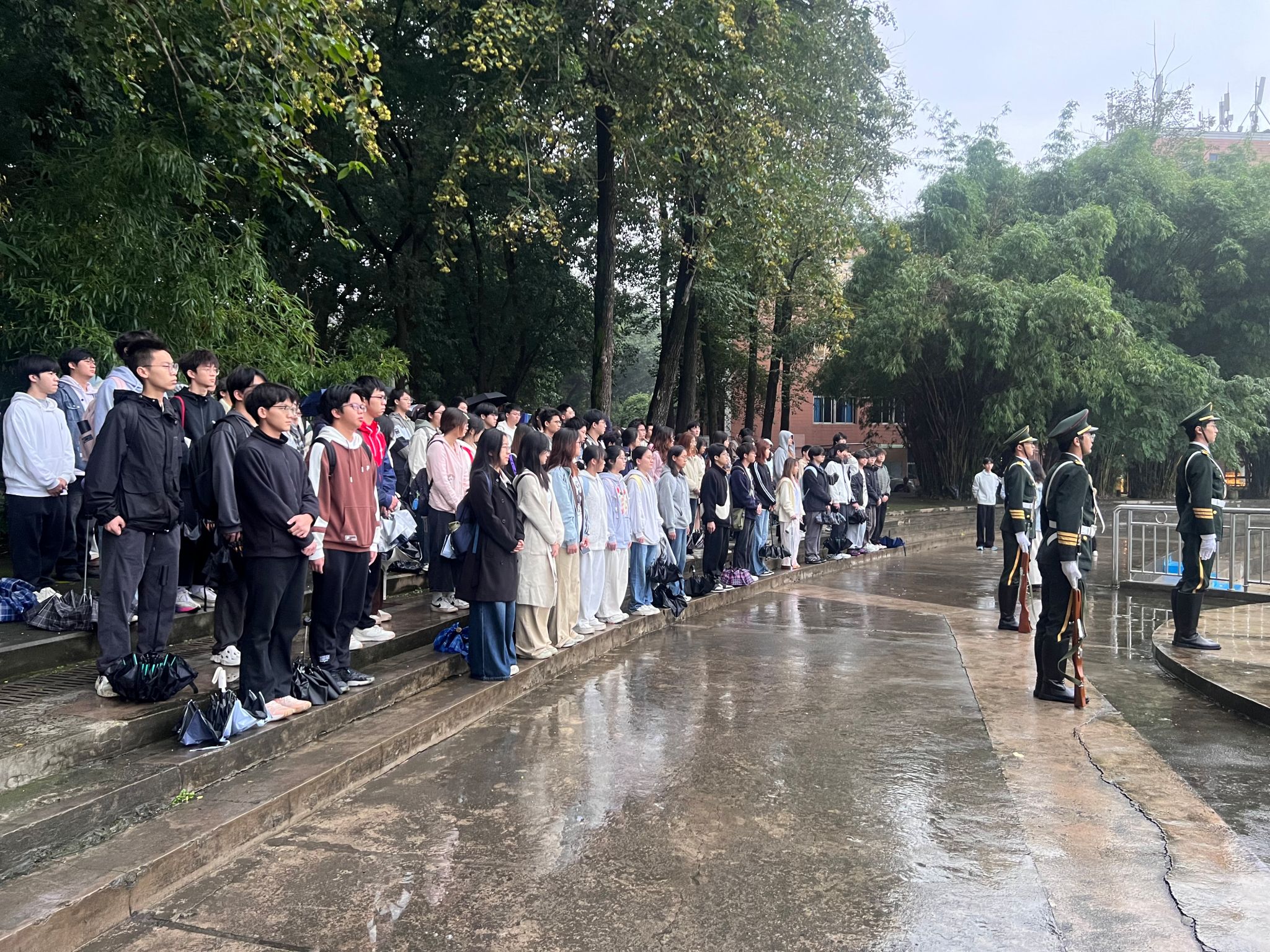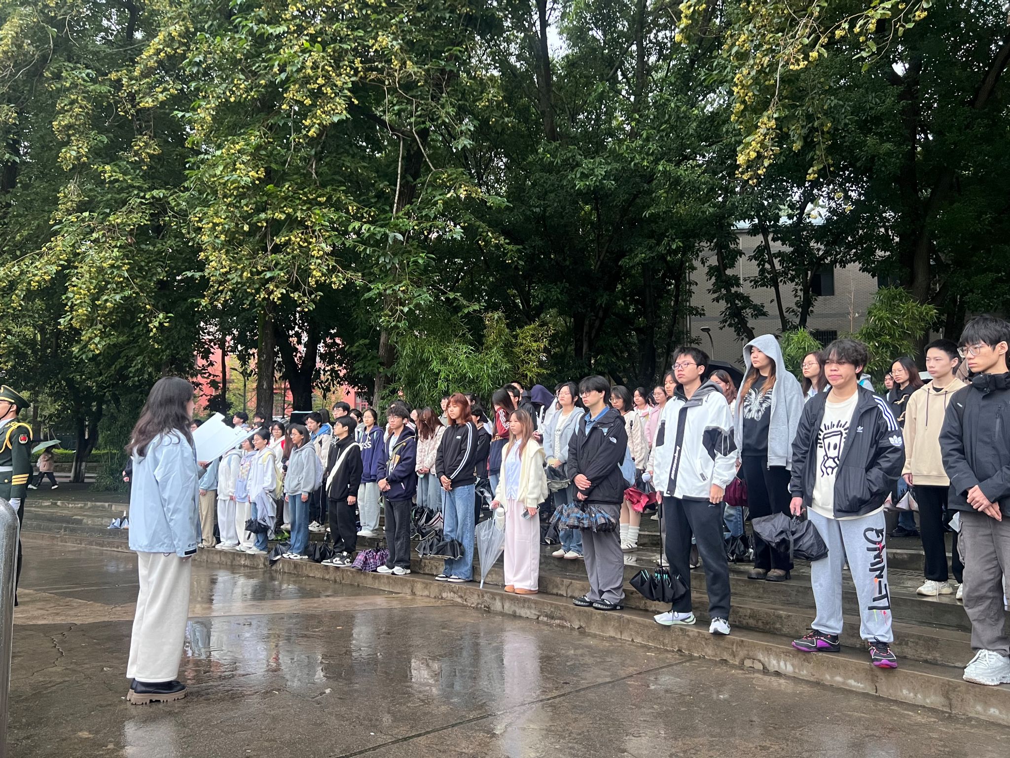 本科生二支部、五支部牵头,带领2024级五个团支部全体学生,在A区思群广场庄严开展“升国旗忆峥嵘,守初心勇担当”升旗仪式暨党建带团建主题活动。活动由本科生二支部书记、2024级辅导员徐柳老师统筹组织,全体2024级本科生准时集结,以饱满的精神状态参与此次活动。