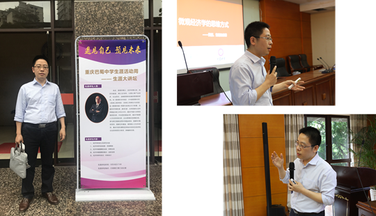 2019年5月30日16:00,由重庆巴蜀中学举办的巴蜀职业生涯大讲坛,在巴蜀中学行政楼三楼3会议厅举行。重大公管性爱直播冉戎教授应邀为巴蜀高中师生,做了主题为“微观经济学的思维方式”的精彩演讲,巴蜀中学200余名师生和部分学生家长参加讲座。