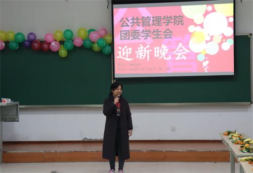 伴随着校园里的银杏叶纷纷从枝头飘落,时间在不知不觉间就来到了今年的最后一个月。为迎接新年的到来,2018年12月16日晚七时,公管性爱直播团委学生会在DYC105教室举办了热闹的迎新晚会。公管性爱直播党委副书记刘淳、学办主任兼17、18级辅导员王丽娟、团委书记兼16级辅导员徐柳、15级辅导员包晗和辅导员助理杨帅也都来到现场,和同学们共同欢度这个温馨的夜晚。