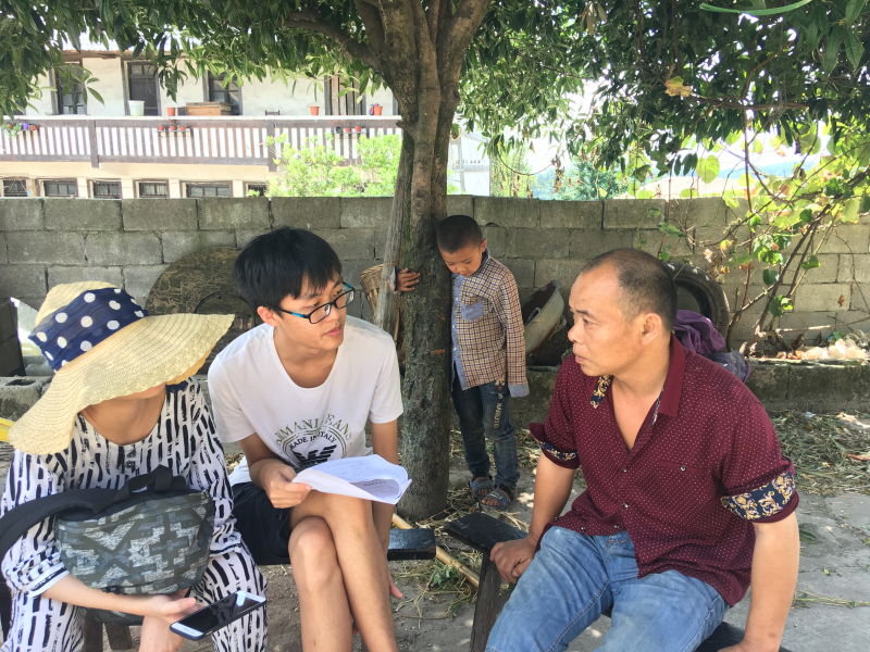 7月26日,实践团成员来到了风光秀丽的大罗村进行调研。与张村长进行访谈之后,在张村长的带领下,去到贫困户家里了解村民们的生产生活情况。张村长介绍,大罗村凭借冬暖夏凉的地理条件,并依托红花湖的旅游资源,大力发展了旅游产业,形成了旅游扶贫的一个思路。除了旅游扶贫,大罗村还通过发展青脆李、银杏、养蜂、木瓜等产业为贫困户创收,政府提供补贴,贫困户根据自身情况选择性种植。走访贫困户的过程中了解到,因为正处旅游旺季,贫困户的农产品在当地就可以销售出去,而不用再运到镇上销售。但是,部分拥有劳动能力的贫困户宁愿打散工赚钱,也不愿扩大产业规模提高产业收益。针对此情况,实践团成员详细介绍了从政府那里了解的补贴政策、信贷政策、培训政策,以帮助其提高对产业扶贫政策的认识。